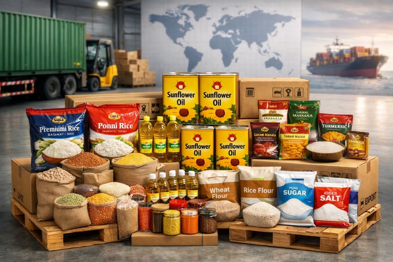 We work closely with reliable manufacturers, farmers, and FMCG brands to ensure consistent quality, competitive pricing, and timely delivery. Our export operations are designed to meet global standards in packaging, hygiene, and logistics, making us a dependable partner for importers, distributors, supermarkets, and bulk buyers worldwide.